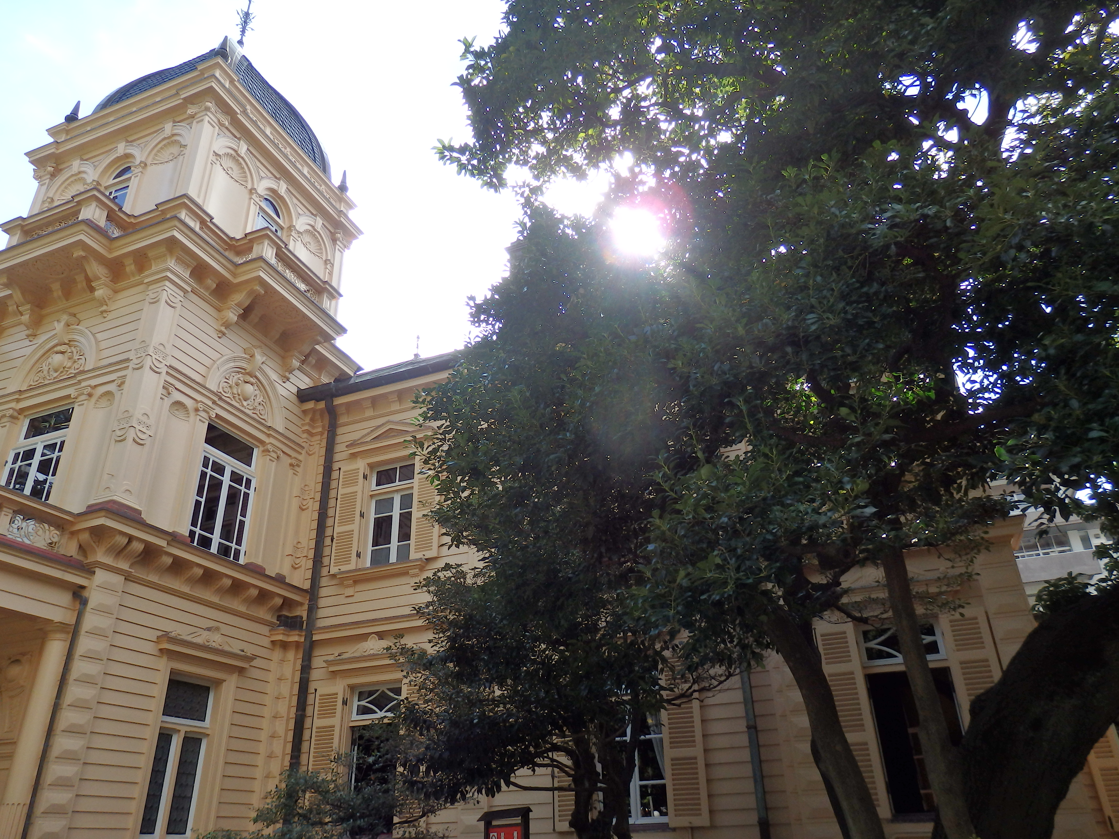 旧岩崎邸は、三菱第三代社長岩崎久彌の茅町本部として明治29年に施工された洋館である。現在三つの建物(洋館、和館、撞球室)が現存しており、洋館と撞球室は旧古河庭園を設計した設計士ジョサイア・コンドルによって設計され、装飾は17世紀初頭のイギリスで流行したジャコビアン様式が取り入れられている。和室大広間は大河喜十郎の施工である。現在の岩崎邸は、当時の3分の1程の敷地面積となっているが、今でも広大な敷地である為、岩崎家がどれほどの財力を持つ財閥であったかが伺える。久彌の父は三菱財閥創設者岩崎彌太郎であり、文京区にある五代将軍・徳川綱吉の側用人を務めた柳沢吉保の下屋敷、六義園を明治初頭に購入した人物である。旧岩崎邸庭園は、旧古河庭園、六義園、清澄庭園と共に都立9庭園に指定された庭園のひとつである。