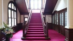 また、美しく使いやすい階段を上がっていくと、2階はプライベートスペースとして使われていた居室があるが、現在は学生達が学ぶ場である教室となっている。2階の暖炉は1階のものと比べシンプルなデザインである。