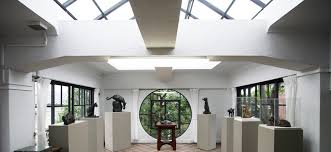 朝倉は東京美術学校を卒業した1907(明治40)年、24歳の時に谷中にアトリエと住居を構える。当初は小さいものであったが、その後敷地を拡張したり、増改築を繰り返す。現在の建物は1935年(昭和10年)に建造されたが、1986(昭和61)年に台東区に移管され、台東区立朝倉彫塑館となり、2001(平成13)年には建物が国の有形文化財に登録され、2008(平成20)年には敷地全体が「旧朝倉文夫氏庭園」として国の名勝に指定された。朝倉はここを「朝倉彫塑塾」と命名し、教場として広く門戸を開放し、独自の自然観と深く結びついた教育感で弟子を育成し、この建物にもそれが色濃く反映されている。アトリエは8.5mの天井高があり、足を踏み入れた時のインパクトは大きい。
