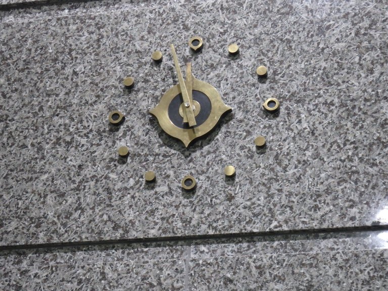 日本銀行の向かいの建物の中に、貨幣博物館があり、壁の時計の中心部分にも日本銀行のマークがありました。貨幣博物館に入館する時も、手荷物検査があります。