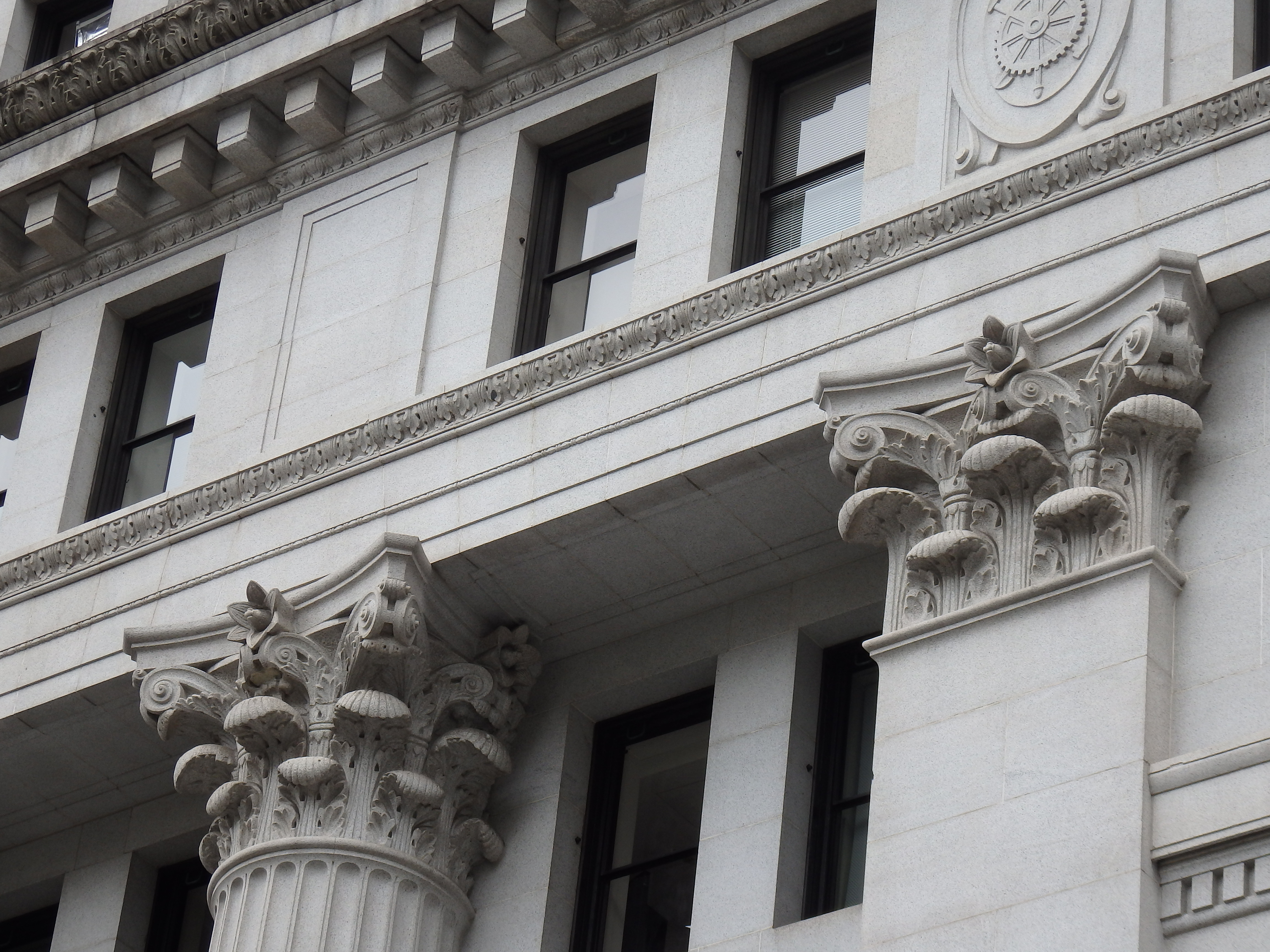 また、日本銀行正面入り口上には、咆哮の獅子像がデザインされその中央にも日本銀行のマークが施されています。