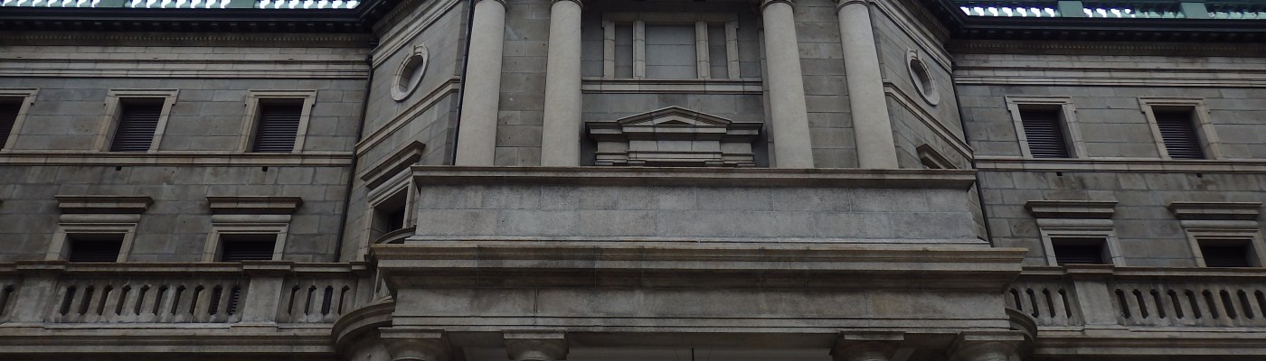日本唯一の日本銀行券の発行・流通・管理を行う銀行。明治15年(1882)10月10日永代橋のたもとで仮店舗として開業。本館設計者は東京駅舎を設計した辰野金吾。増築部分別館は辰野の弟子である長野宇平治が設計した。