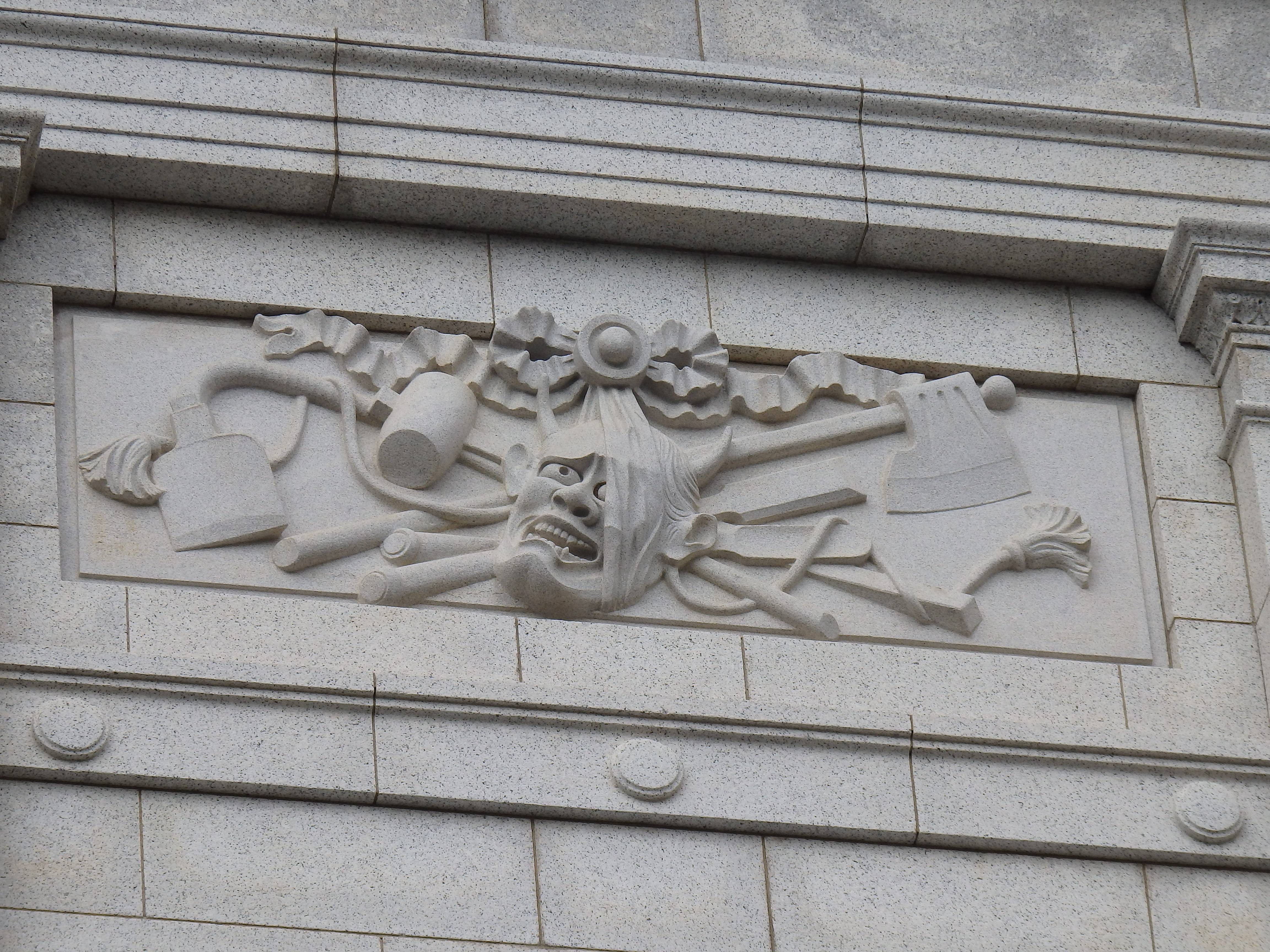 明治34年8月の着工から7 年を要して、明治41年9月29日に竣工、10月10日に奉祝会から献納された。ついで11月30日、この奉献美術館は「表慶館」と命名され東京帝室博物館が管理することとなったのである。なお、正面入り口の2頭の青銅製ライオンは大熊氏広と沼田一雅の製作である。