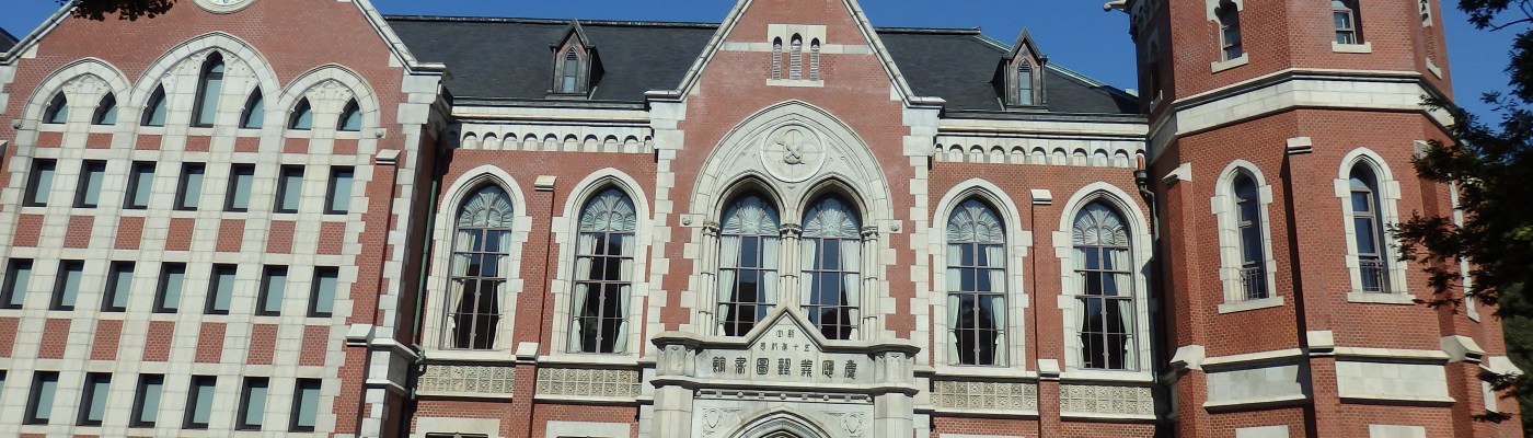 三田の図書館(旧館)は明治45・大正元年(1912)年、曽禰達蔵・中條精一郎の設計によるゴシック式れんが造りで建築される。昭和44年3月には重要文化財として指定され、書庫は昭和2年8月と昭和36年11月との2回にわたり増築されている。