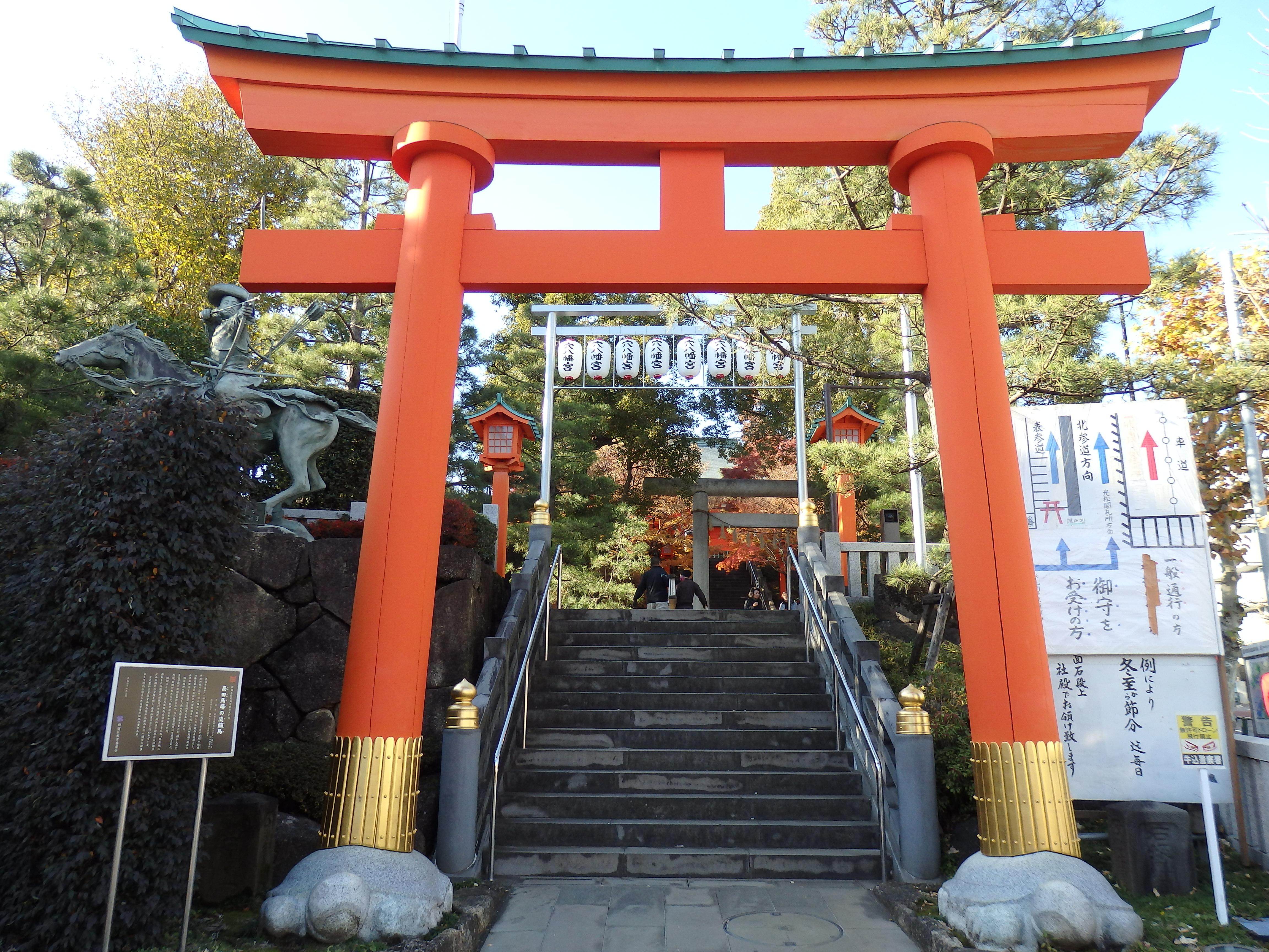 早稲田大学近くにある神社。かつては、高田八幡宮と呼ばれていた。冬至から節分までに配布される一陽来復御守は金銀融通御守として有名で、御守を冬至・大晦日・節分の夜中12時に文字を翌年の恵方に向け、恵方とは反対側の高いところに貼る。毎年、一陽来復の御守を求めて長蛇の列ができる。