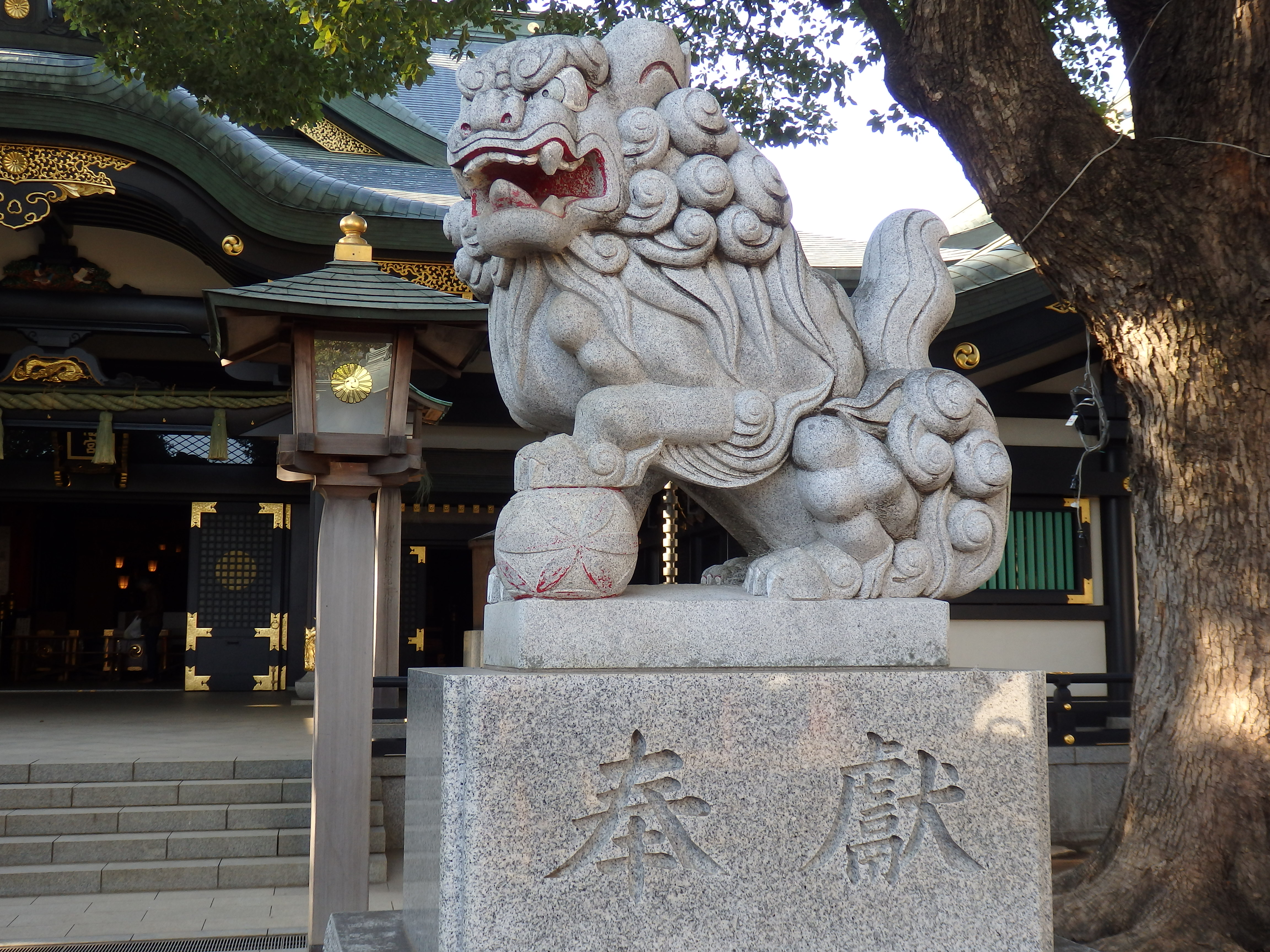 また、狛犬ですが足元を見ると右の狛犬には鞠が、左の狛犬には子がいます。