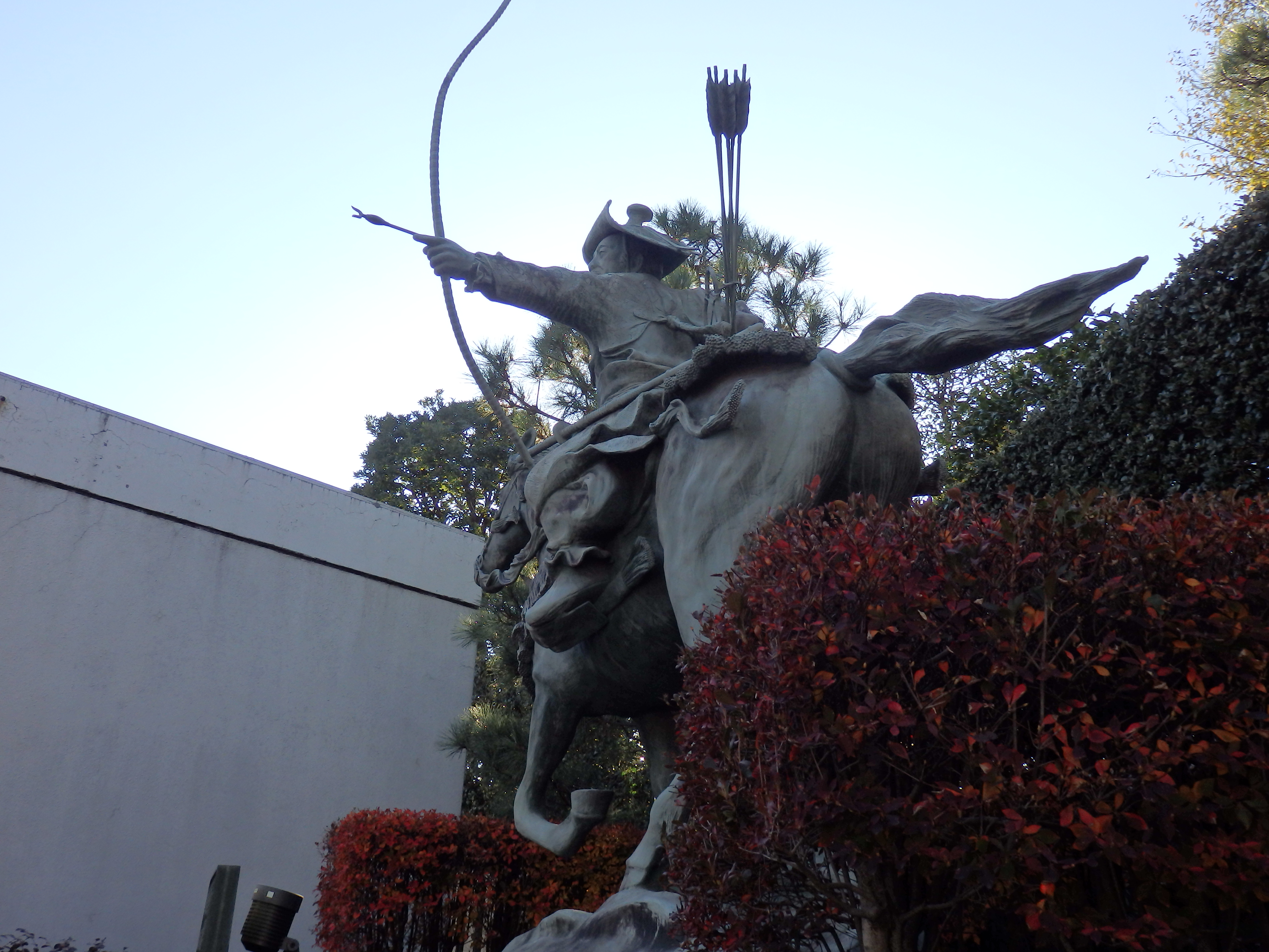康平五年(1062)奥州の乱を鎮圧した源義家(八幡太郎)が凱旋の折り、日本武尊命の先蹤にならってこの地に兜と太刀を納めて氏神八幡宮を勧進し、永く東北鎮護の社として祀られた。