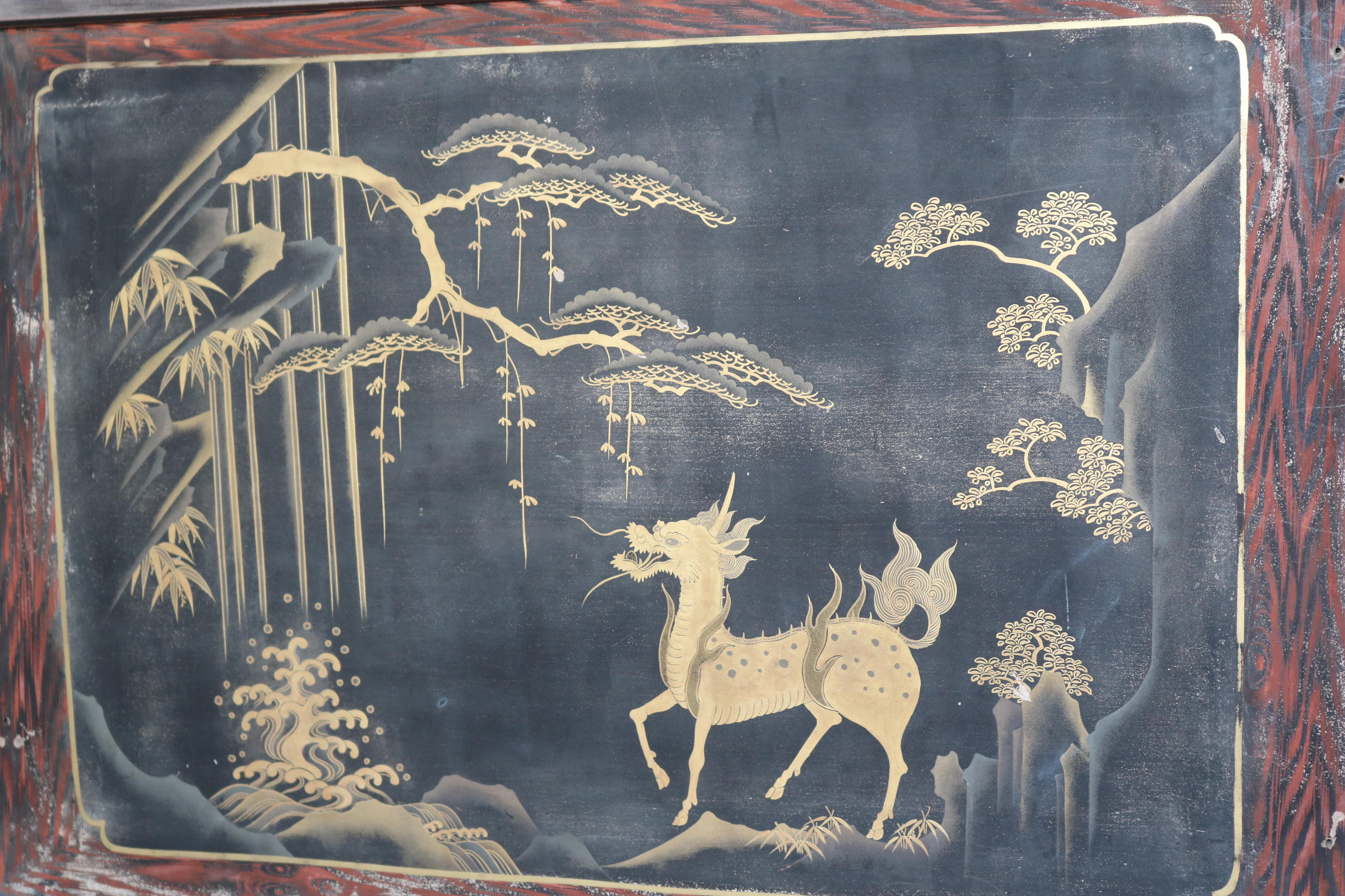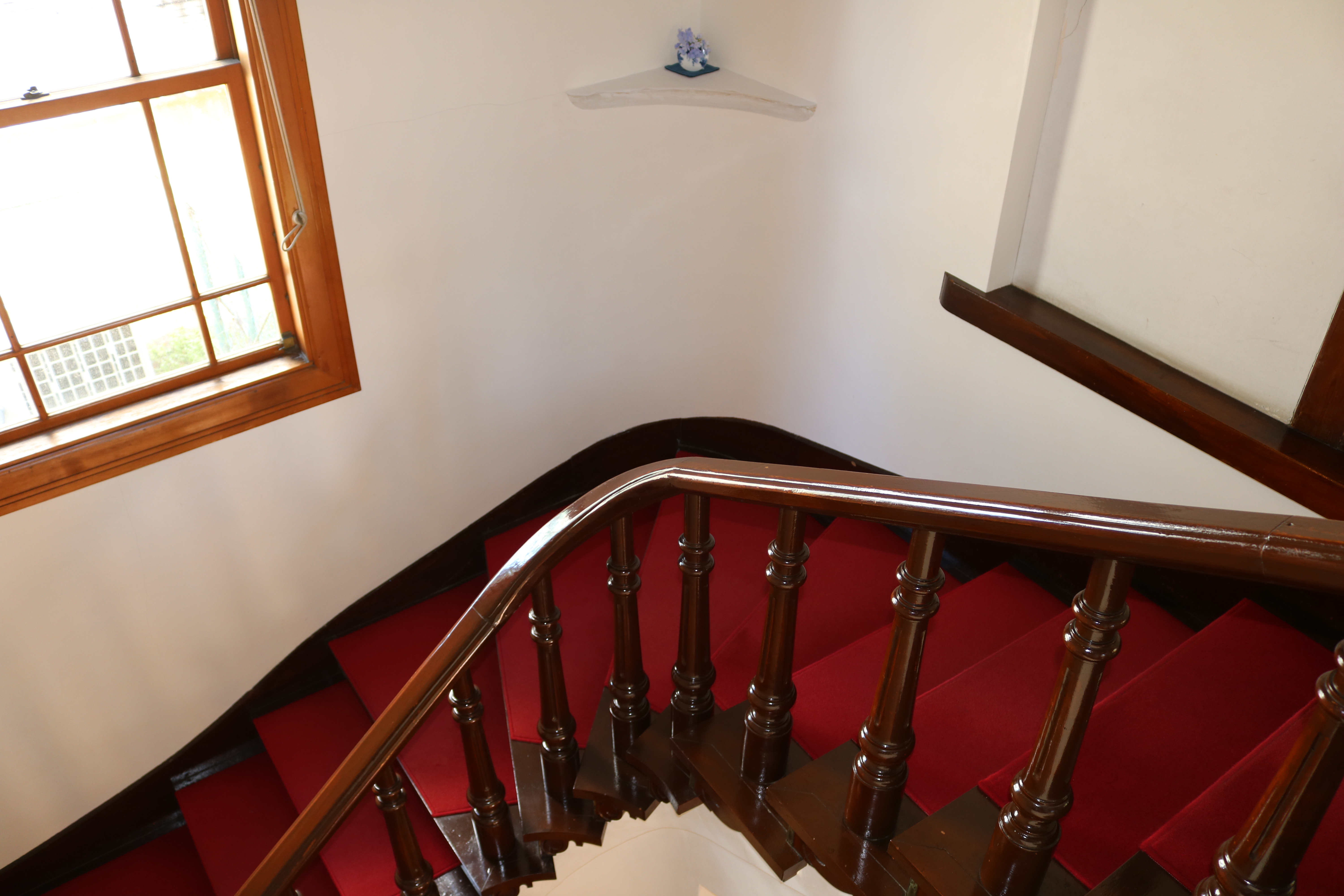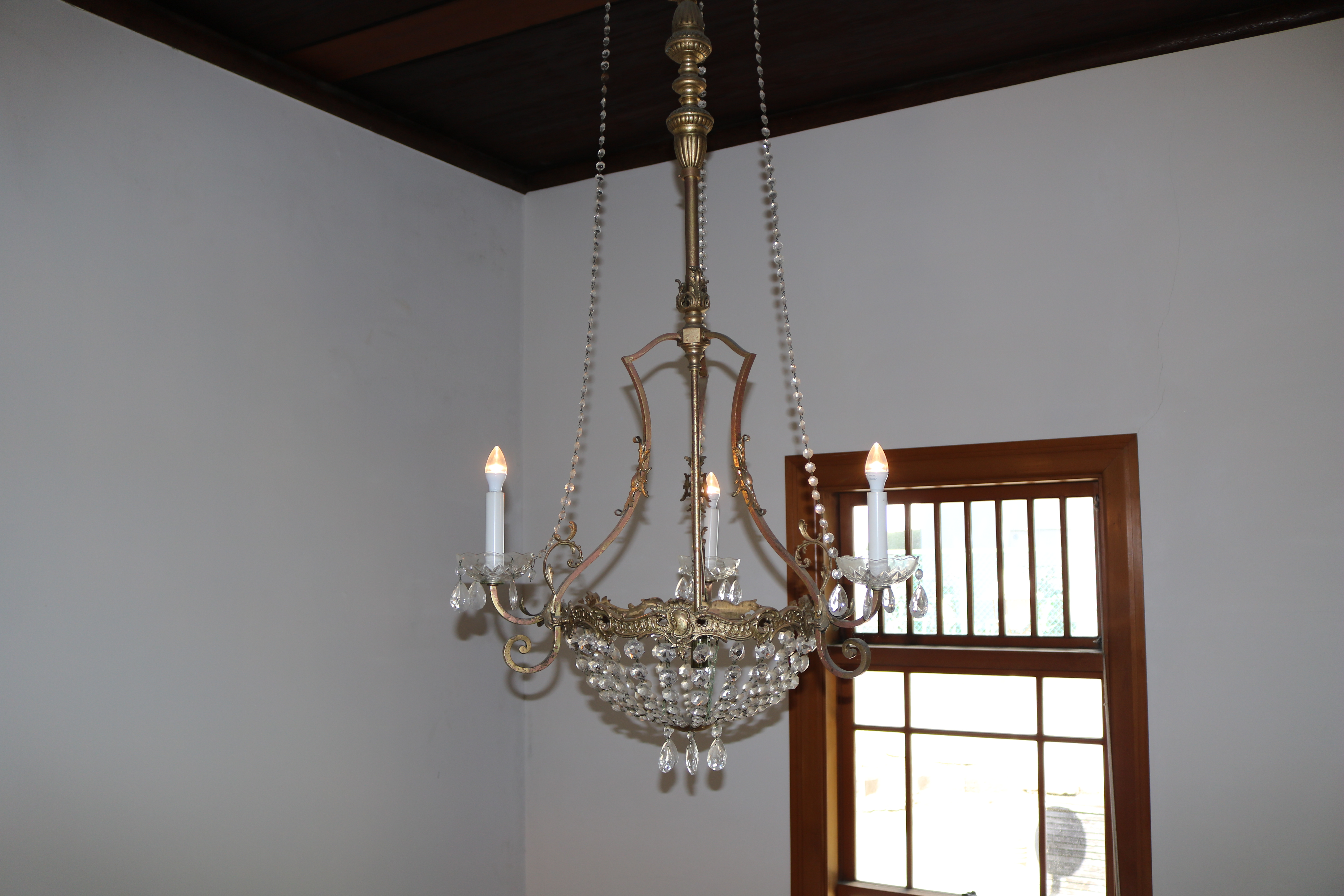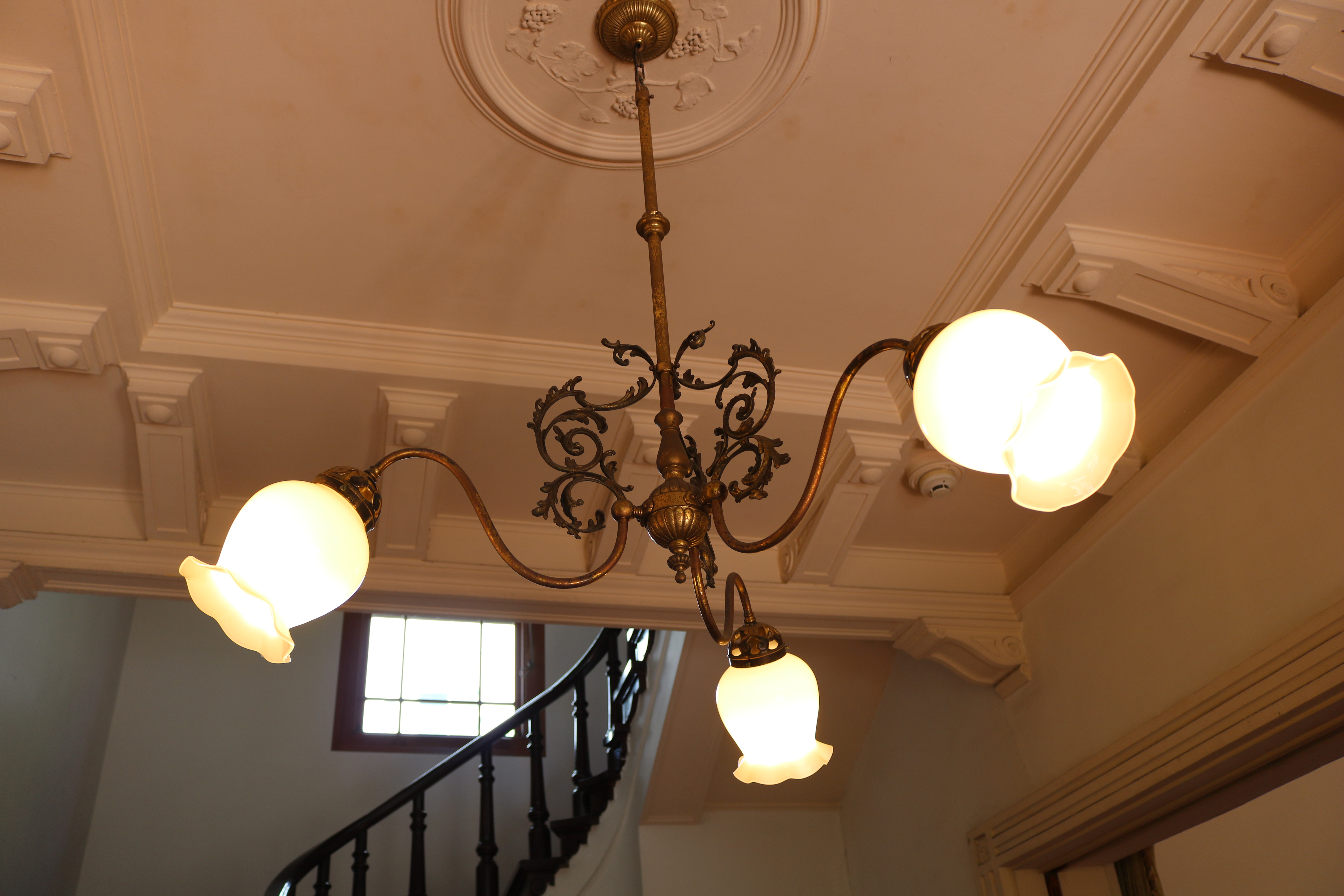 玄関ホールの天井の中心飾りと、和室欄間にはワイン王らしくぶどうがあしらわれており、応接間には大理石をベースにビクトリアンスタイルの絵描きタイルをはめ込んだ暖炉があり、床板は幾何学模様の寄木。