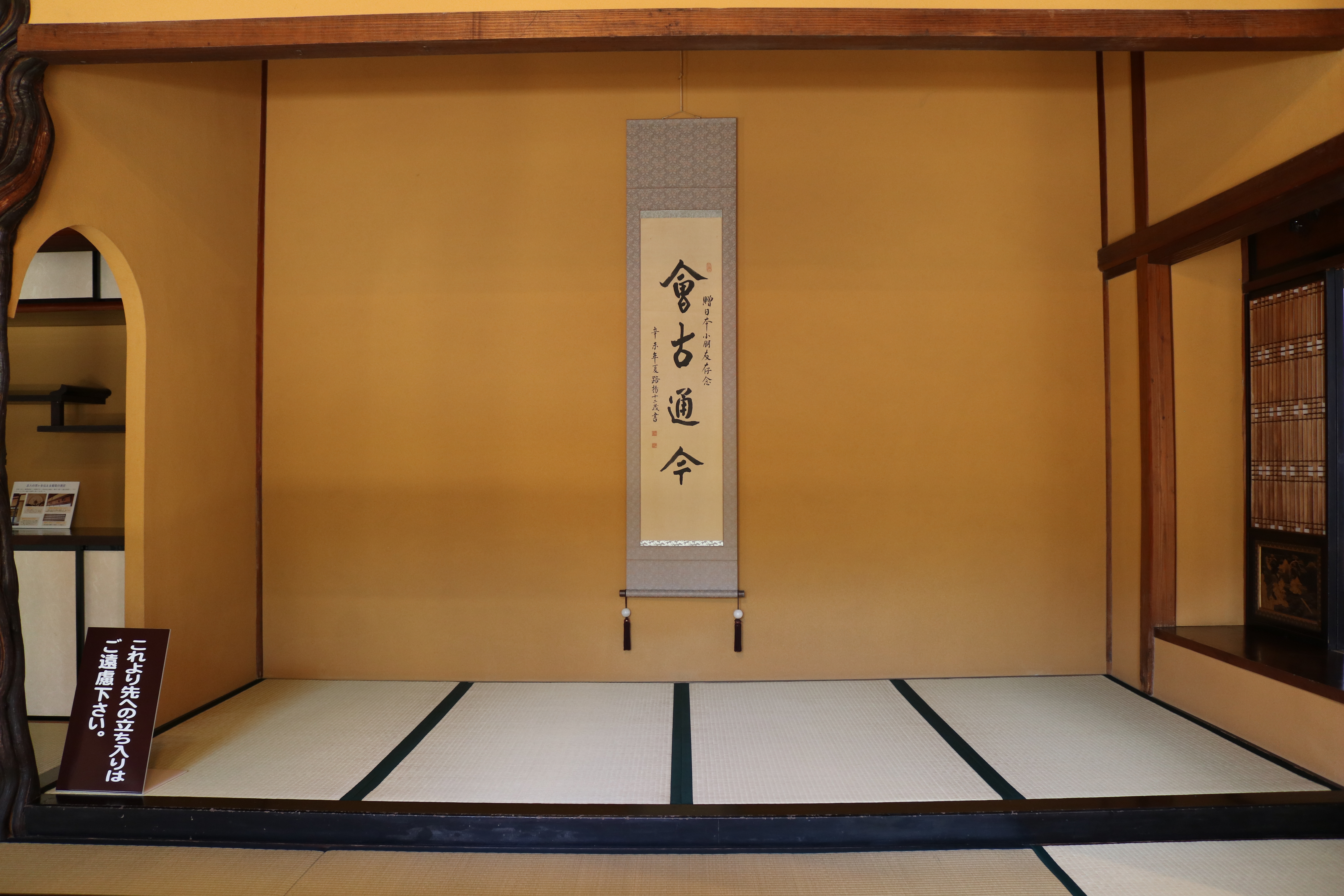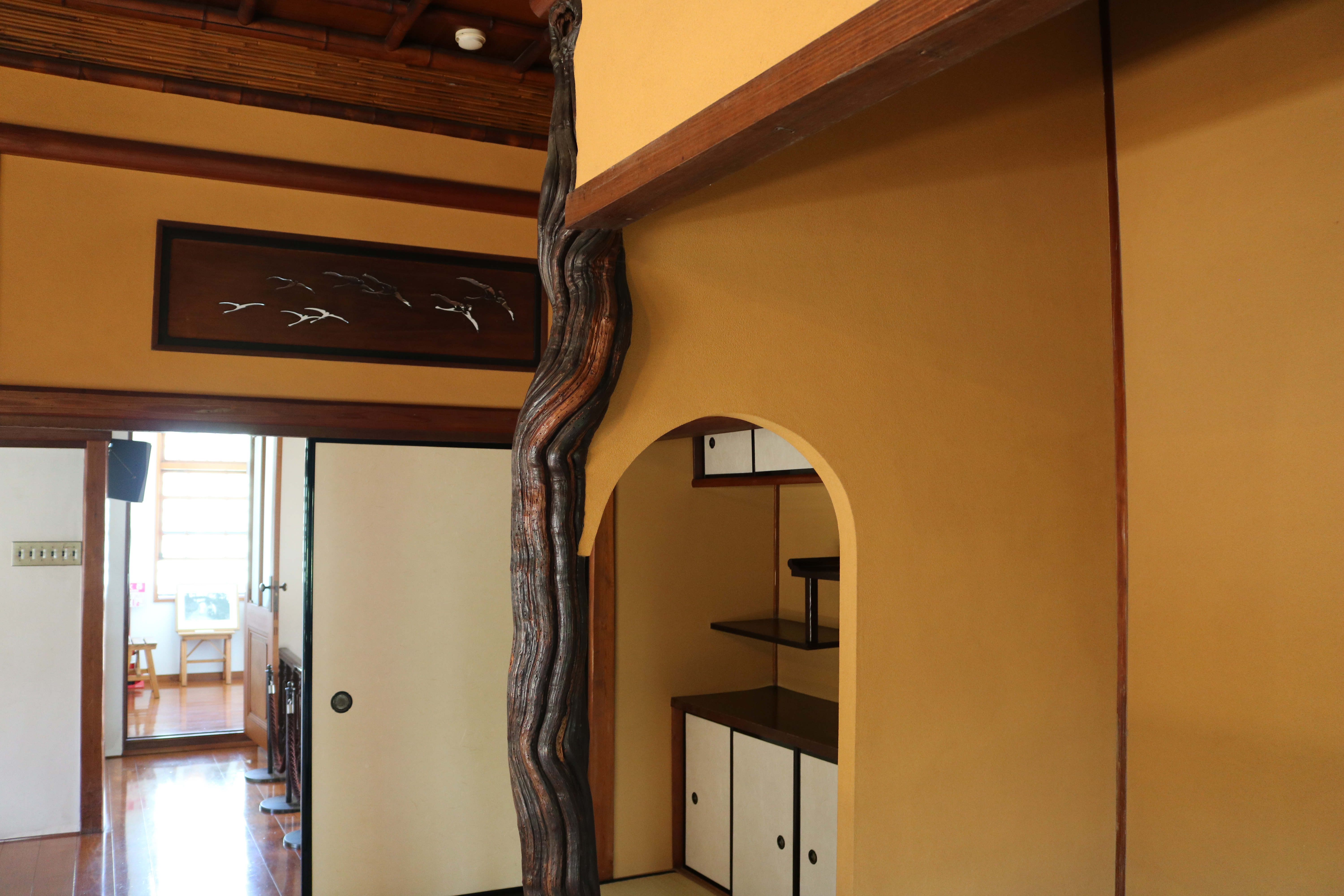 2階和室の床の間の床柱には葡萄の古木を大胆に使用している。