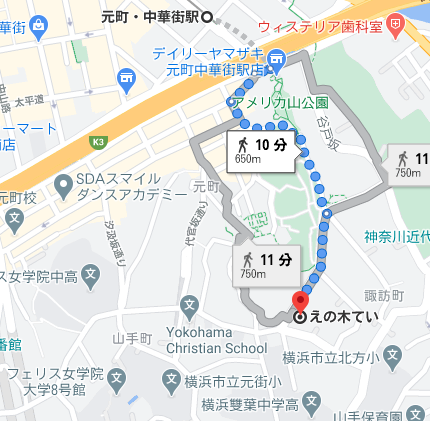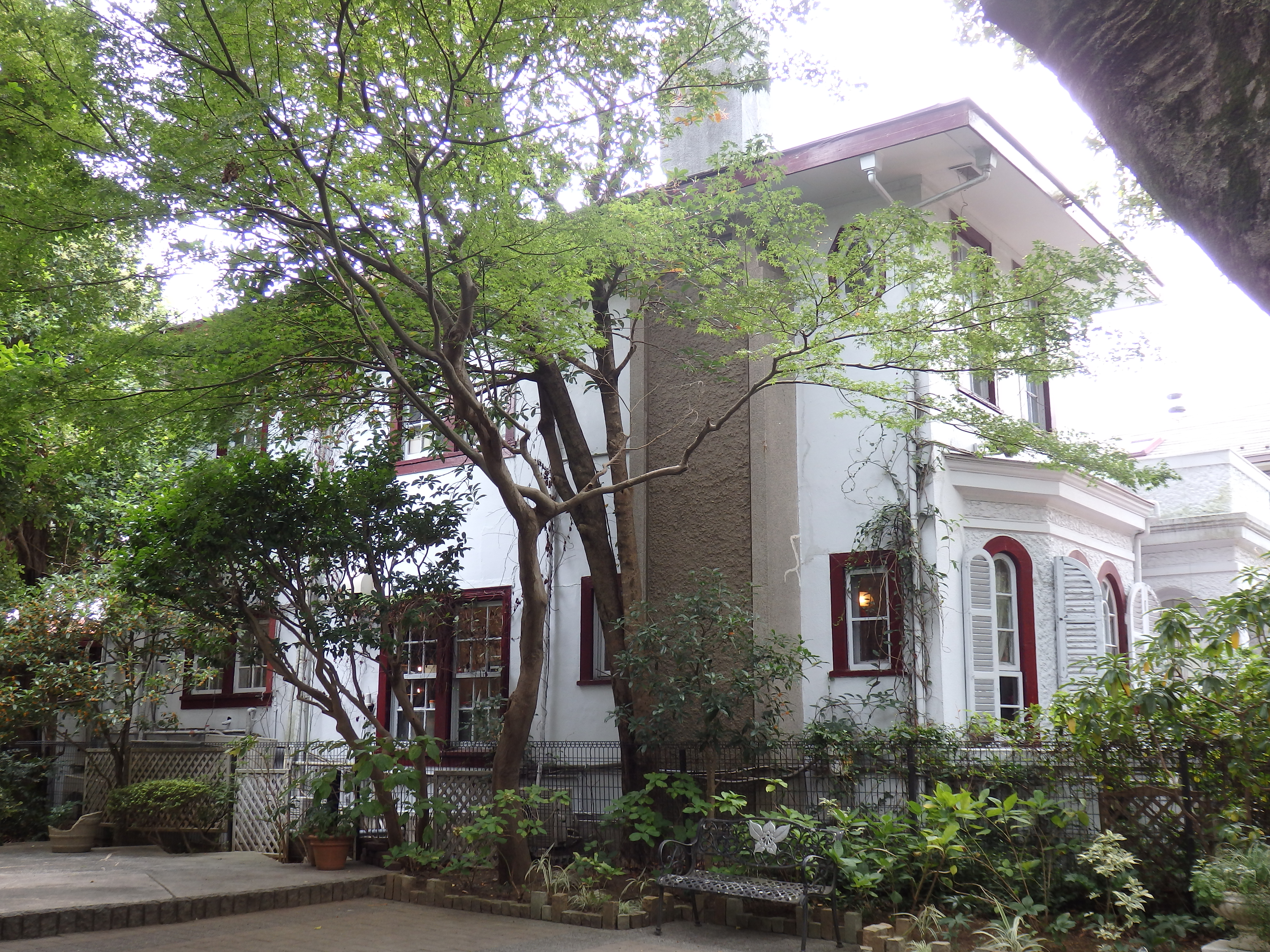山手234番館と同じ設計者朝香吉蔵により昭和2(1927)年に建設された外国人むけ住居を、昭和45(1970)年に買取、昭和54(1979)年1階リビングをカフェとしてオープンしたのが始まり。