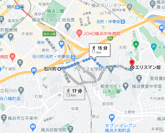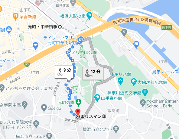 エリスマン邸は、元々は山手127番地に建設されており、現在の立地ベーリックホール向かいの位置には近年移築された。エリスマンは昭和15年に亡くなるまで日本に滞在し、山手の外人墓地に永眠している。