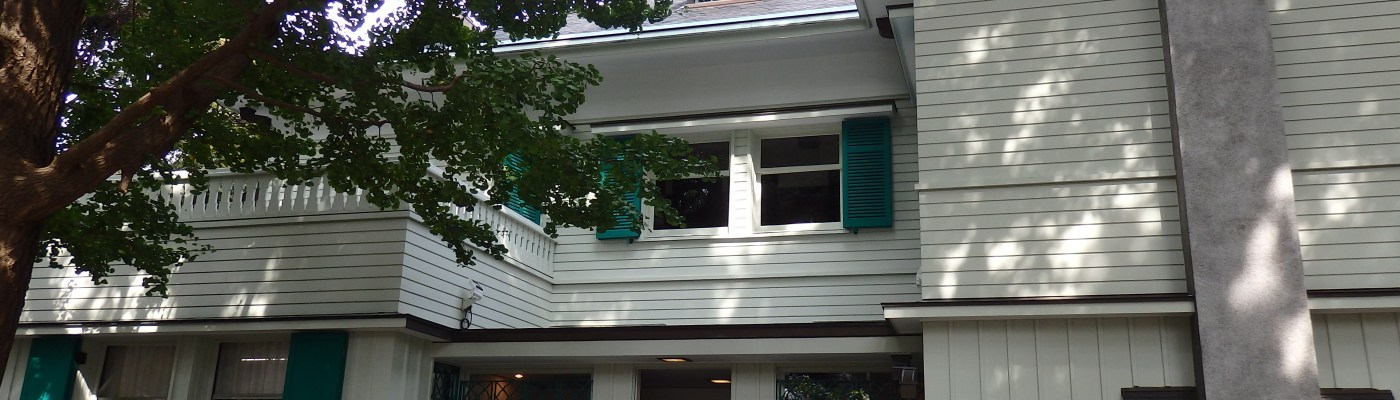 鎧戸、上げ下げ窓、バルコニーといった従来の洋館のデザインを取り入れながら開口を大きくとり、窓には大きなガラスを入れ、明るくモダンな意匠になっている。
